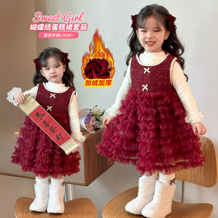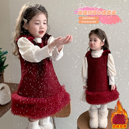 1*5收藏“肩带蝴蝶结小红裙套装”