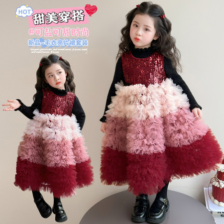 1*3收藏“红色亮片渐变裙子套装”